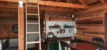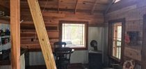 The 20′ x 20′ cabin, built six years ago, features a screened 7-foot front porch and a 7-foot side porch that’s half open and half covered, perfect for relaxing and taking in the views. The cabin is wired for a generator or power box and includes a 250-gallon water tank that supplies water to a sink and shower. Additional amenities include a splendid outhouse and an indoor emergency toilet for convenience.